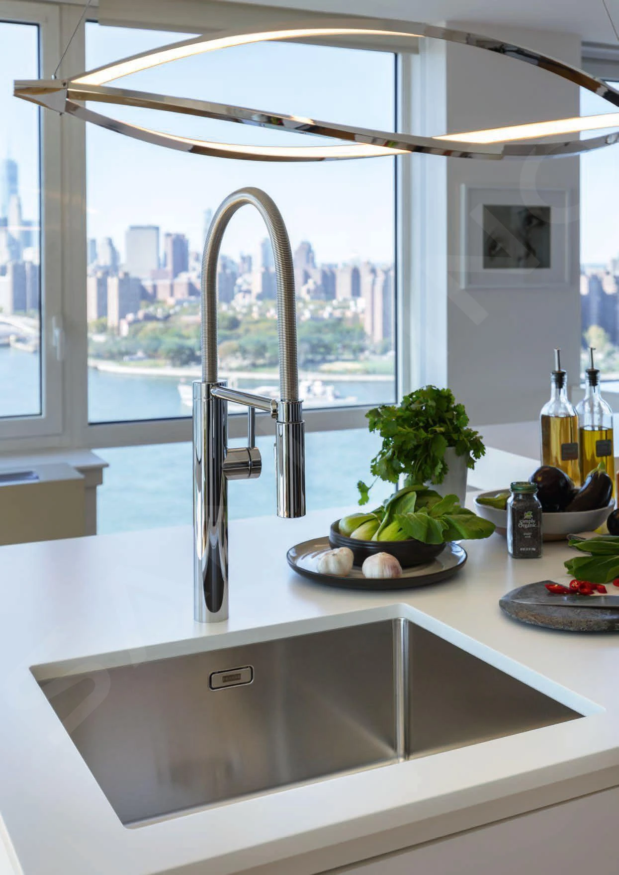 L’acier inoxydable est un matériau durable qui résiste même à une manipulation brutale, des objets durs ou tranchants peuvent cependant rayer le matériau. Si vous souhaitez conserver la surface de l’évier en parfait état, des précautions importantes doivent être prises lors de la manipulation d’objets similaires. Un évier sera toujours rayé lorsque l’on fait la vaisselle. Les rayures sur un évier sont la preuve que le produit est utilisé conformément à ses fins. En utilisant une pâte de nettoyage destinée à cet usage, les rayures fines peuvent être polies, et l’évier peut ainsi conserver sa brillance. Avant la première utilisation, l’évier doit être correctement nettoyé avec une pâte de nettoyage pour l’acier inoxydable. Les poudres de nettoyage à sec ne sont pas recommandées. L’évier est équipé par défaut d’une couche protectrice qui accroche la graisse et les impuretés sans nettoyage. Après utilisation, nettoyez l’évier et l’égouttoir avec un chiffon doux humidifié et un détergent et rincez à l’eau claire. Dans les zones où l’eau est calcaire, vous pouvez empêcher la formation d’un film mat lié aux dépôts de calcaire en utilisant une crème ou une pâte de nettoyage liquide. Lorsque vous utilisez des tapis d’évier en plastique, assurez-vous qu’ils ne restent pas posés sur la surface de l’évier trop longtemps car les impuretés et l’humidité sont maintenues en dessous, ce qui provoque la formation de dépôts de calcaire. La formation de dépôts de calcaire peut être évitée en séchant la surface de l’évier après chaque utilisation. Si, malgré cela, ces dépôts se forment, il est possible de les éliminer avec un chiffon doux humide et une crème de nettoyage liquide. Appliquez ce produit sur la surface et utilisez un chiffon pour frotter toute la surface de l’évier. N’utilisez pas le côté grattant des éponges !