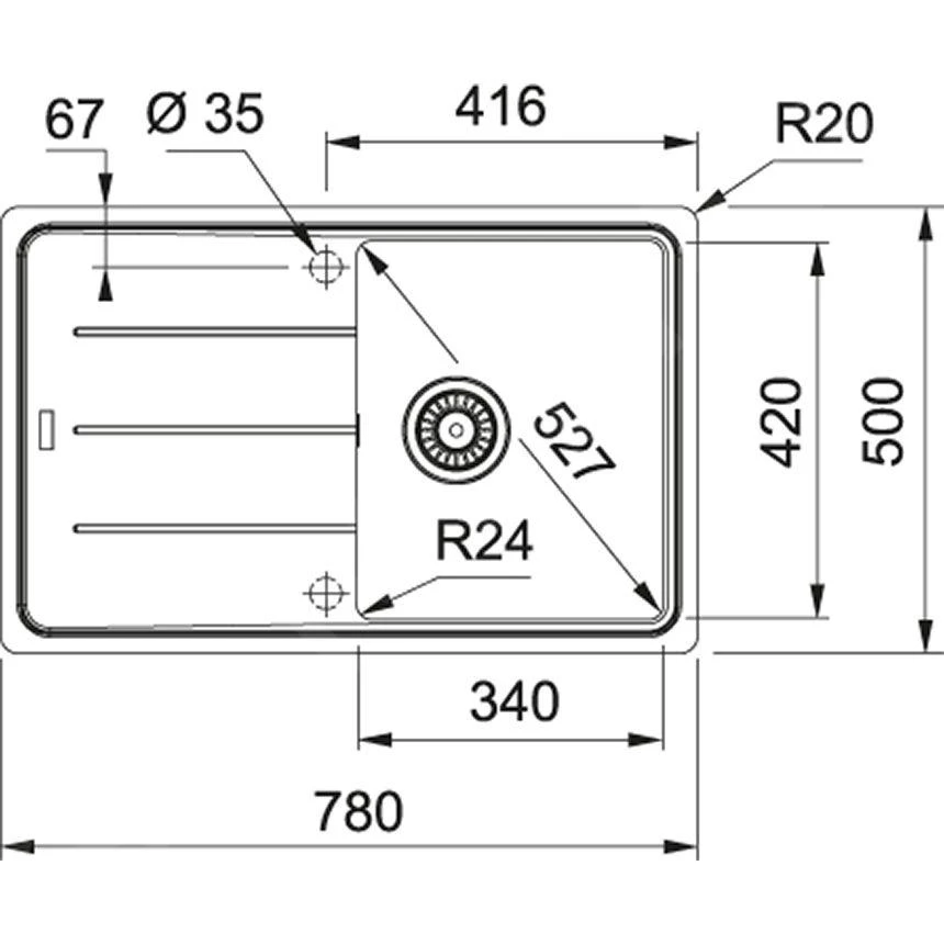 - évier 340 × 420 × 200 mm