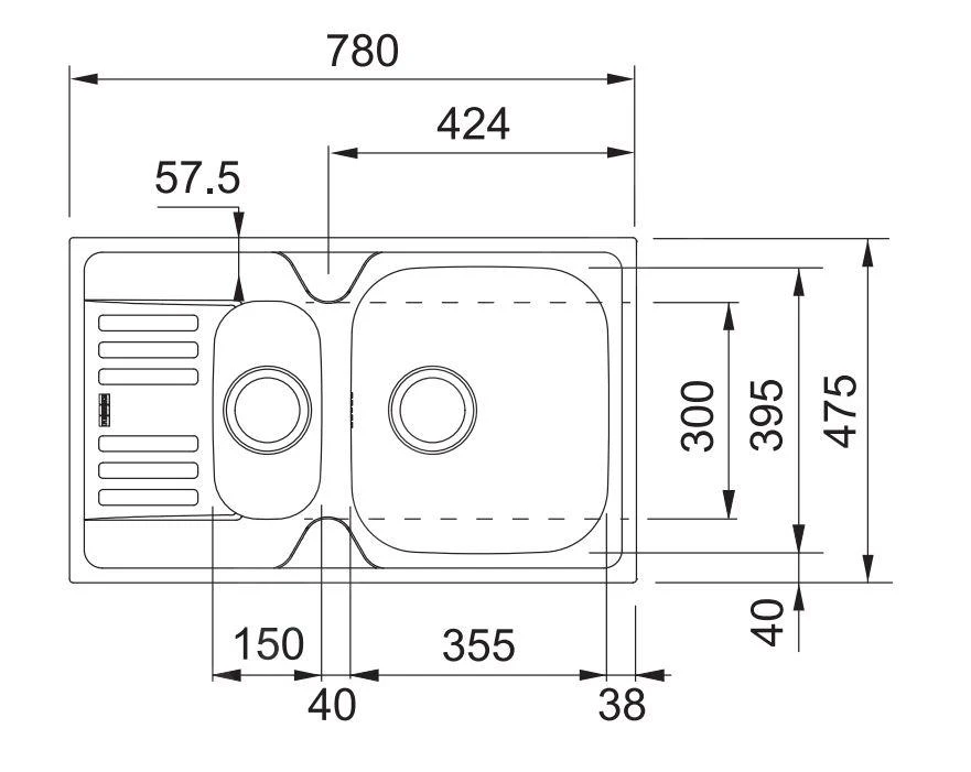 – possibilité de commander un trou pour robinetterie diamètre 35 mm ou pour une bonde à panier rotatif