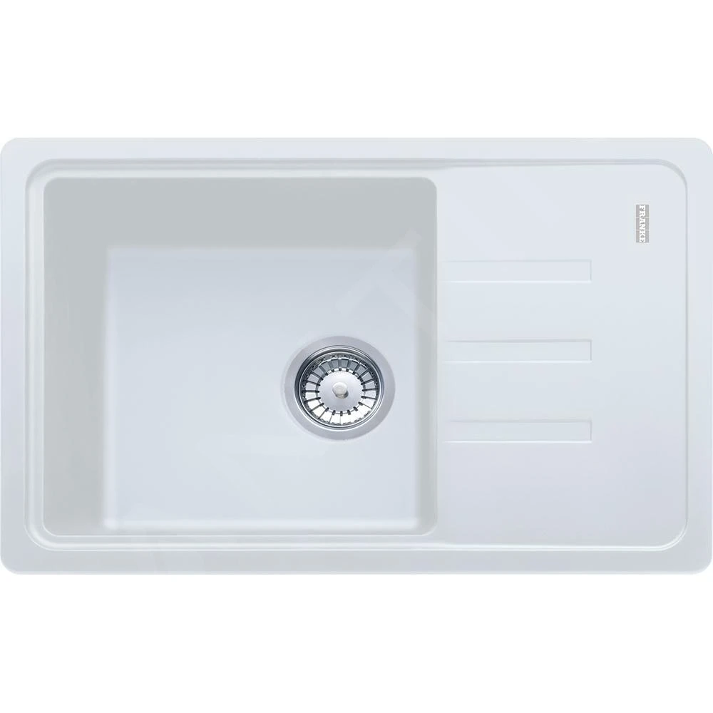 Évier avec un design intemporel simple et un égouttoir plus petit.