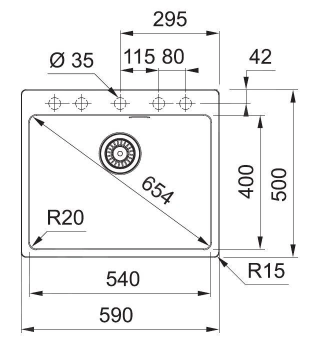 - dimensions totales : 590 × 500 mm