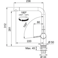 Mitigeur cuisine Active Twist à bec Nickel brossé ref 056891 de Franke, rotation du bec sur 180°, levier de commande 0/100°, débit 8,3 L/min. Hauteur 312 mm. Limiteur de température. Avec la fonction Active Twist, remplissez ou videz votre évier en un tour de main grâce à un bouton de commande intégré au mitigeur, relié à l’évier. Lorsque celui-ci est tourné, l’eau sale s’écoule sans que vous ayez à mettre vos mains dans l’eau. Code FUN: 115.0653.504. Code EAN: 7612986056891