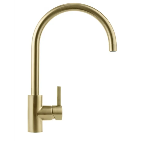 Mitigeur cuisine Eos Neo Ă bec de Franke, coloris reflet d’or, ref 230543. Il s’agit d’un traitement de surface de grande qualitĂ© qui confère une rĂ©sistance et une durĂ©e de vie accrues au mitigeur. Cette technologie rend nos mitigeurs de couleur rĂ©sistants Ă l’usure, aux produits chimiques, Ă la corrosion et aux rayures. Rotation du bec sur 180°. Embase ø 45 mm. Perçage ø 35 mm. Levier de commande 0°/ 90°. DĂ©bit 12,8 L/min (3 bars). Ecoulement laminaire. Système de fixation avec corps filetĂ©. Code EAN: 7612986230543, code FUN: 115.0681.243
