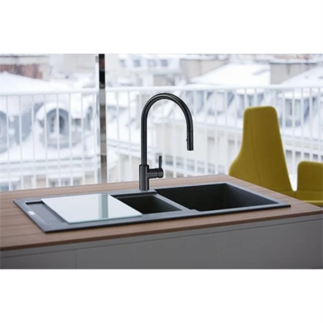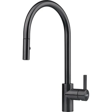 Mitigeur cuisine Eos Neo Ă douchette double jet de Franke, coloris inox noir, ref 820479. Il sâagit dâun traitement de surface de grande qualitĂ© qui confĂšre une rĂ©sistance et une durĂ©e de vie accrues au mitigeur. Cette technologie rend nos mitigeurs de couleur rĂ©sistants Ă lâusure, aux produits chimiques, Ă la corrosion et aux rayures. Rotation du bec sur 180°. Embase Ăž 45 mm. Perçage Ăž 35 mm. Levier de commande 0°/ 90°. DĂ©bit 10,4 L/min (3 bars). Flexible de douchette tressĂ© : 1,5 m. Ecoulement laminaire. SystĂšme de fixation avec corps filetĂ©. Code EAN: 7612985820479, code FUN: 115.0613.671