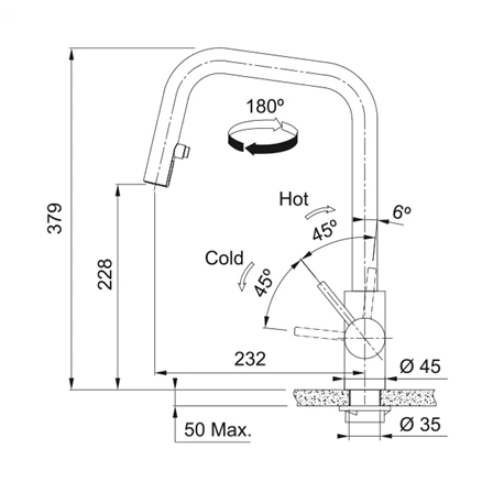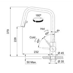 Mitigeur cuisine Ă douchette double-jets extractible Kubus, rĂ©f 474733 de Franke, inox, rotation du bec sur 180°, embase Ă50 mm, perçage Ă35 mm, levier de commande -6°/90°, dĂ©bit 8,5 L/min, hauteur 379 mm, code EAN: 7612985474733. Code FUN: 115.0529.207.