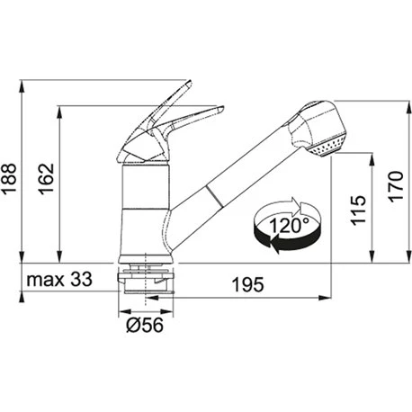Mitigeur cuisine extractible Novara de Franke, rĂ©fĂ©rence 624026. Douchette extractible. Dispositif anti-calcaire sur douchette. Rotation du bec sur 120°. Jet d’eau: Double jet. Embase: Ă 55 mm. Perçage: Ă 35 mm. Dimensions (Lxlxh): 400x185x57 mm. Poids: 2,5 kg. Code EAN: 7612980604026. Coloris Chrome. Normes NF et C3 (Les produits certifiĂ©s C3 sont proposĂ©s comme solution dâĂ©conomie dâeau et dâĂ©nergie). Code FUN: 115.0380.642.