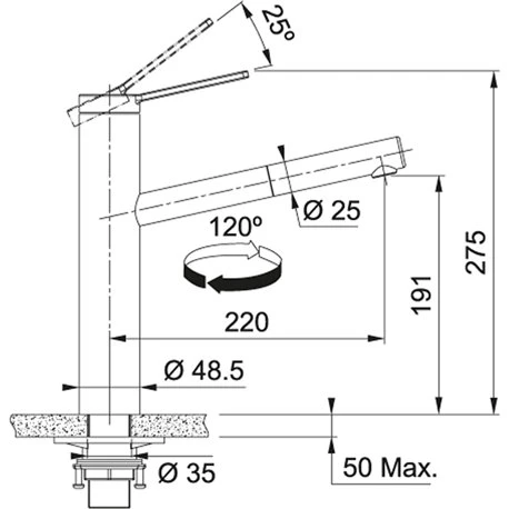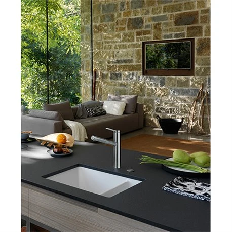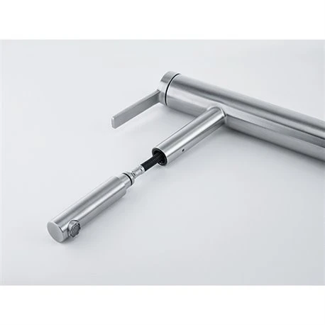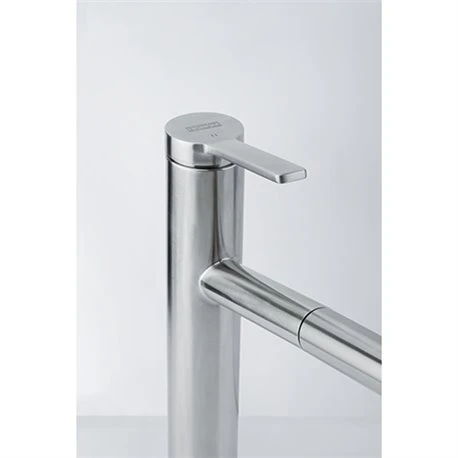 Mitigeur cuisine Tango Neo 750431 Douchette Monojet Franke en inox, rotation du bec sur 120°. Embase Þ 49 mm. Perçage Þ 35 mm. Levier de commande : +45°/ -45°. Debit : 13 l/min. Flexible de douchette tressé (1,5 m). Ecoulement laminaire. Cartouche ECO. SystÚme de fixation avec corps fileté. Code FUN: 115.0596.388. Code EAN: 7612985750431