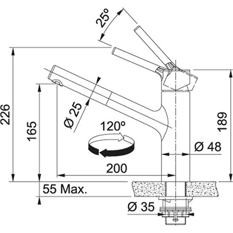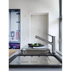Mitigeur cuisine Taros Neo 750370 Douchette Monojet Franke en inox, rotation du bec sur 120°. Embase ø 48 mm. Perçage ø 35 mm. Levier de commande +45°/ -45°. Debit : 14l / min. Flexible de douchette tressé (1,5 m). Cartouche ECO. Ecoulement laminaire. Système de fixation avec corps fileté. Code FUN: 115.0596.383. Code EAN: 7612985750370