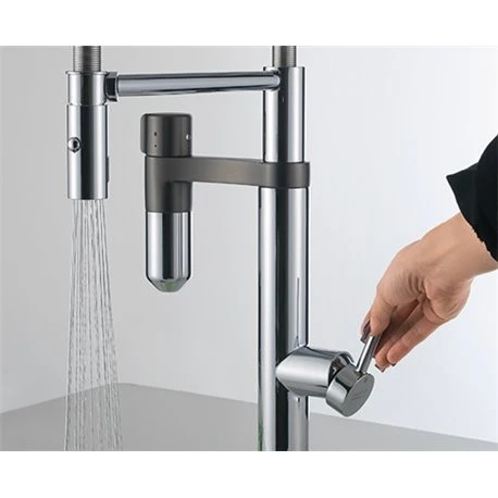 Mitigeur cuisine Vital Semi-pro chrome , douchette double jets 865586 Franke, 3 en 1 : levier eau chaude, eau froide et système de filtration dissociĂ©. Circuit d’eau filtrĂ©e totalement indĂ©pendant. Rotation du bec sur 360°, dĂ©bit 3,5 L/min. 2 cartouches de 500 L incluses, pile pour le timer incluse. Levier de commande 0/90°, hauteur 550 mm. Code FUN: 120.0621.230. Code EAN: 7612985865586
