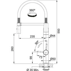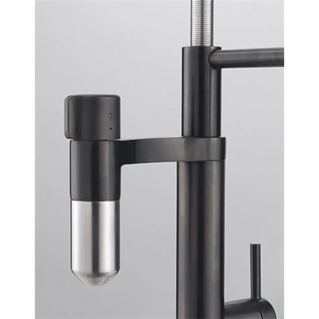 Mitigeur cuisine Vital Semi-pro PVD noir , douchette double jets 866910 Franke, 3 en 1 : levier eau chaude, eau froide et systĂšme de filtration dissociĂ©. Circuit d’eau filtrĂ©e totalement indĂ©pendant. Rotation du bec sur 360°, dĂ©bit 3,5 L/min. 2 cartouches de 500 L incluses, pile pour le timer incluse. Levier de commande 0/90°, hauteur 550 mm. Code FUN: 120.0621.313. Code EAN: 7612985866910