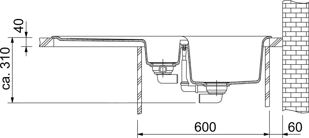 – Attention ! Sans trou pour robinetterie (le trou peut être percé directement