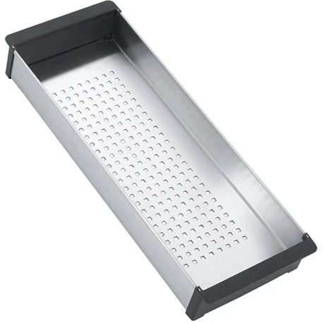 Panier égouttoir PEBBX en métal avec cadre synthétique, réf. 698713 Franke, compatible avec les éviers PLANAR (PPX 110, PPX 120, PPX 211, PPX 251), BOX (BXX 110, BXX 120, BXX 160, BXX 210, BXX 220). Dimensions (Lxl): 429×156 mm. Code EAN: 7612981698713. Code FUN: 112.0394.981.