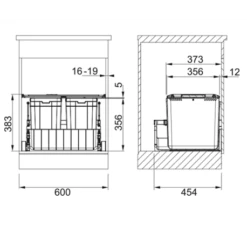 Poubelle cuisine Sorter Duo 60 référence 414024 44 Litres de Franke A fixer sur porte coulissante, dimensions (HxlxL): 570 mmx383 mmx454 mm. 2 bacs : 22 + 22 Litres, Avec couvercle. Equipé de coulisses Grass avec fermeture automatique en fin de course. Muni de stabilisateurs permettant une fixation solide de la façade du meuble. Livré avec étagère faisant également office de couvercle pour les bacs et pourvue d’un filtre à charbon actif contre les mauvaises odeurs. Code EAN: 7612980414024. Code FUN: 121.0150.143.