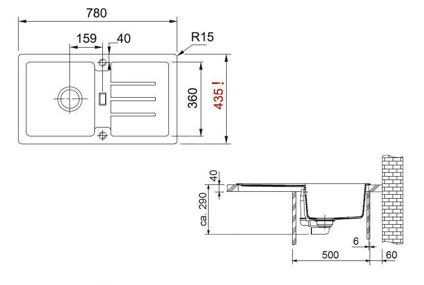 - le prix comprend une bonde à panier 3 1/2“ avec trop-plein, un siphon compact 6/4“ avec prise pour lave-vaisselle