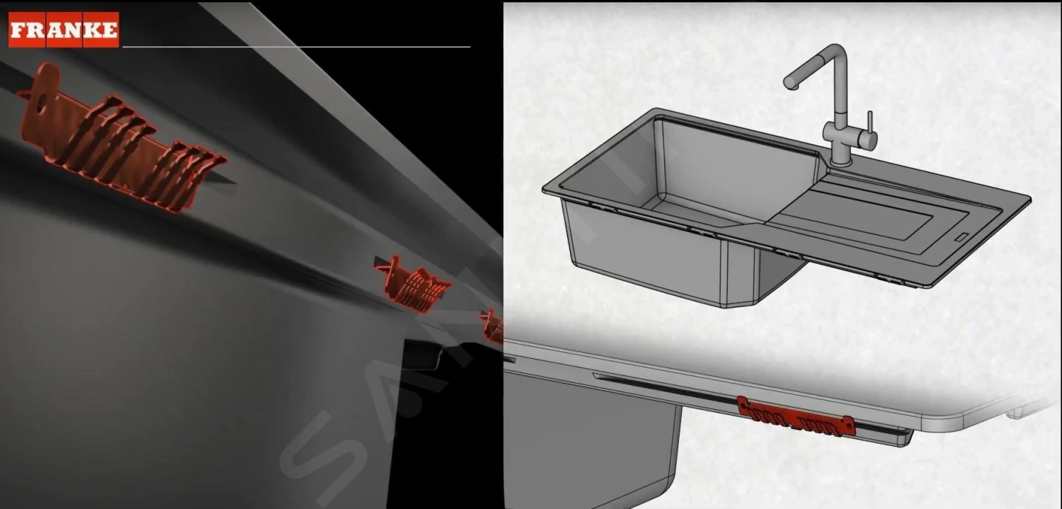- le prix comprend : une entretoise pour le montage de la robinetterie de la cuisine, une bonde à panier 3 1/2“ avec trop-plein, un siphon compact  6/4“ avec prise pour lave-vaisselle, des  attaches  Fast-Fix pour la fixation de l’évier
